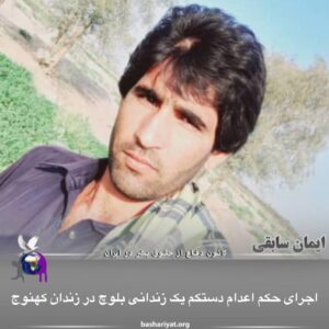 سحرگاه روز دوشنبه ۱۲ خردادماه ۱۴۰۴، حکم #اعدام دستکم یک زندانی #بلوچ که از بابت اتهامات مرتبط به مواد مخدر پیشتر به اعدام محکوم شده بود، جهت اجرای حکم اعدام به سلول انفرادی زندان کهنوج منتقل شده بود به اجرا در آمد.هویت این زندانی بلوچ؛ « #ایمان_سابقی » ۳۰ ساله فرزند یحیی، اهل و ساکن زهکلوت احراز شده است.ایمان در ۱۳۹۸ به اتهامات مرتبط به مواد مخدر در رودبارجنوب بازداشت و در زندان کهنوج نگهداری میشد و از دادگاه انقلاب این شهرستان به اعدام محکوم شده بود.