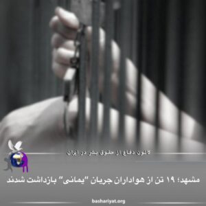 ۱۹ نفر از هواداران جریان “#یمانی” توسط نیروهای امنیتی در #مشهد #بازداشت شدند.کانال های خبری نزدیک به نهادهای امنیتی بدون ذکر جزییات عنوان کردند که این شهروندان از هواداران جریان “یمانی” هستند و بازداشت آنها توسط نیروهای امنیتی و با دستور قضایی صورت گرفته است. این افراد هنگام شرکت در یک جمع مذهبی بازداشت شدند.در گزارشات منتشر شده به هویت و محل نگهداری شهروندان بازداشتی اشاره نشده و تا کنون هیچ یک از مقامات امنیتی و قضایی در خصوص بازداشت این افراد توضیحی ارائه نداده است.