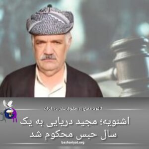 ( نجم الدین) #مجید_دریایی، شهروند اهل #اشنویه، توسط شعبه ۱۰۱ دادگاه کیفری دو این شهرستان به یک سال حبس به اتهام «فعالیت تبلیغی به نفع گروههای مخالف نظام» محکوم شد. بازپرسی او در فروردینماه انجام و با وثیقه آزاد شده بود. وی سابقه بازداشت دارد. با وجود اینکه رسیدگی به این اتهام طبق قانون باید در دادگاه انقلاب انجام شود، بهدلیل نبود امکانات، در شهرهای کوچک مانند اشنویه، دادگاههای کیفری به این پروندهها رسیدگی میکنند.