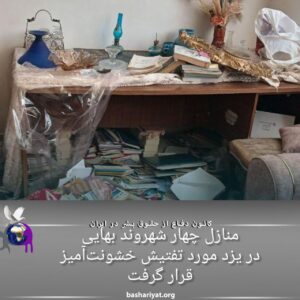 در شب یکشنبه ۱۸ خرداد ۱۴۰۴، مأموران اطلاعاتی به منازل چهار شهروند بهایی در یزد یورش بردند. آنها بدون ارائه حکم قانونی و با صورتهای پوشیده، وارد خانههای سامان زائر و نصرت محمدی شده و ضمن ایجاد رعب و وحشت، به تفتیش خانه، بازرسی بدنی، و ضبط وسایل شخصی، آثار مذهبی و طلا و جواهرات پرداختند. همچنین خانه میلاد محمدی و سها روحانیفرد (در غیابشان) و منزل پدر سها، سهیل روحانیفرد، نیز مورد بازرسی قرار گرفت و وسایل الکترونیکی و مذهبی ضبط شد.