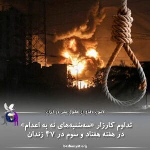 کارزار زندانیان سیاسی در زندانهای ایران در مخالفت با اعدام با عنوان #سه_شنبه_های_نه_به_اعدام که به شکل اعتصاب غذا توسط زندانیان انجام میپذیرد، در هفته هفتاد و سوم خود و همزمان با تداوم حملات متقابل اسرائیل و جمهوری اسلامی در ۴۷ زنداندر ایران ادامه دارد.