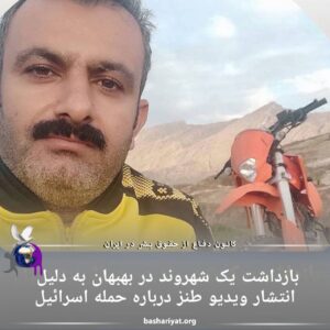 #عنایت_شهبازی، شهروند ۴۰ ساله ساکن بهبهان، به دلیل انتشار یک ویدیو طنز در اینستاگرام درباره حمله اسرائیل، از سوی ماموران امنیتی بازداشت و به مکان نامعلومی منتقل شده است.