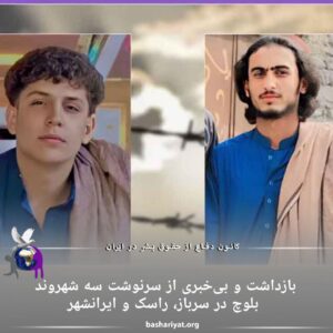 به ترتیب در شهرستان‌های ایرانشهر سرباز و راسلک استان سیستان و بلوچستان، توسط نیروهای امنیتی جمهوری اسلامی ایران بازداشت شده‌اند و کماکان خبری از سرنوشتشان در دسترس نیست.