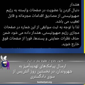 در نخستین روز آتش‌بس، شماری از #شهروندان پیامک‌های تهدیدآمیز از سوی #دادگستری دریافت کرده‌اند که آن‌ها را به دلیل دنبال‌کردن صفحات مرتبط با #اسرائیل در فضای مجازی تهدید به پیگرد قضایی کرده است.