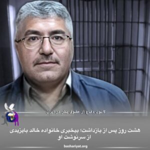 بی خبری از وضعیت این شهروند، افزایش نگرانیهای خانواده و نزدیکان او را در پی داشته است.این شهروند تاکنون از دسترسی به وکیل وملاقات با خانواده محروم بوده است.خانواده آقای بایزیدی هشت روز است که از وی بیخبر و نگران وضعیتش هستند.از دلایل بازداشت و اتهامات مطروحه علیه این شهروند اطلاعی در دسترس نیست.خالد بایزیدی، ۴۳ ساله و دارای سه فرزند است.