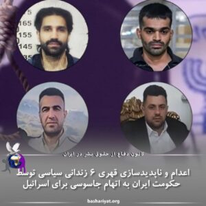 همزمان با آغاز و تداوم جنگ میان جمهوری اسلامی ایران و اسرائیل، شش زندانی سیاسی از جملە سە زندانی کُرد به اتهام “جاسوسی برای اسرائیل” به‌ صورت مخفیانه اعدام شدند. مقامات امنیتی ضمن خودداری از تحویل پیکرهای آنان به خانواده‌ها، از برگزاری مراسم سوگواری نیز جلوگیری کرده‌اند؛ اقدامی که مصداق آشکار “ناپدیدسازی قهری” است. هویت شش زندانی سیاسی که در روزهای اخیر اعدام شده‌اند عبارت است از: