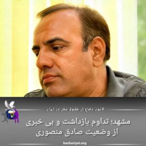 کماکان از سرنوشت #صادق_منصوری، شهروند ساکن #مشهد که هفت روز پیش توسط ماموران اداره اطلاعات در این شهرستان بازداشت شده، اطلاعی در دست نیست. این وضعیت منجر به افزایش نگرانیهای خانواده و بستگان آقای منصوری شده است.