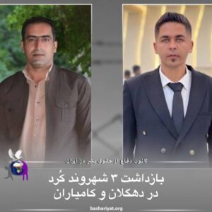 روز شنبە ٢١ تیر ماه ( ١٢ جولای ٢٠٢٥)، #فریا_چاوشینی، ٢٩ سالە و اهل روستای “#داشبند” از توابع #بوکان و #محمد_اللهرضایی، ٣٦ ساله، اهل #سنندج و ساکن #دهگلان بازداشت شدند.