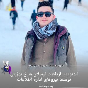 یک شهروند کُرد اهل اشنویە”شنو”، به نام #ارسلان_شیخ_بوزینی، توسط نیروهای ادارە اطلاعات جمهوری اسلامی ایران بازداشت و به مکان نامعلومی منتقل شد.