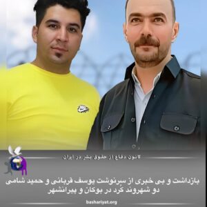 دو شهروند کُرد بە نامهای #یوسف_قربانی، اهل #بوکان و #حمیدشامی، اهل #پیرانشهر، توسط نیروهای امنیتی جمهوری اسلامی ایران ،بدون ارائه هیچگونه حکم قضایی بازداشت و به مکان نامعلومی منتقل شدند.