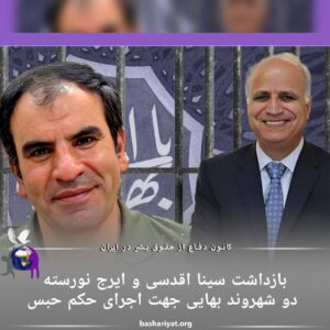 #سینااقدسی و #ایرج_نورسته دو شهروند #بهایی ساکن تبریز جهت سپری نمودن دوران محکومیت یک ماهه خود بازداشت و به زندان تبریز منتقل شدند.