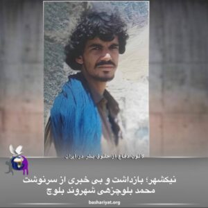 یک شهروند #بلوچ، اهل #نیکشهر از توابع استان سیستان و بلوچستان، با هویت #محمدبلوچزهی، توسط نیروهای ادارە اطلاعات جمهوری اسلامی ایران در این شهر بازداشت و بە مکان نامعلومی منتقل شدە و با گذشت نە روز اطلاعی از سرنوشت وی در دسترس نیست.