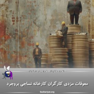 #کارگران شاغل در کارخانه نساجی بروجرد اعلام کردند که دو ماه حقوق معوقه طلبکار هستند و در عین حال پرداخت برخی از مطالبات سال گذشته آنها نیز به تاخیر افتاده است.