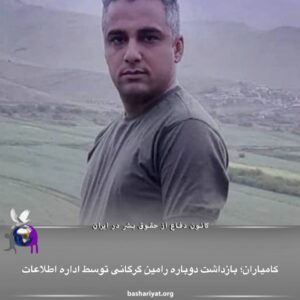 #رامین_گرگانی، شهروند کورد اهل #کامیاران بار دیگر توسط نیروهای اداره اطلاعات جمهوری اسلامی ایران بازداشت شده است. او پیشتر نیز به دلیل فعالیتهایش بازداشت شده است.