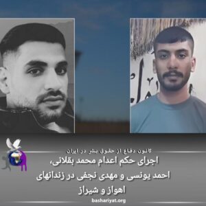 هم زمان در همین روز حکم اعدام دو زندانی بە نامهای #احمد_یونسی و #مهدی_نجفی، شهروند اهل شهرهای #شیراز و #مرودشت استان #فارس در #زندان_عادلآباد_شیراز اجرا شد.