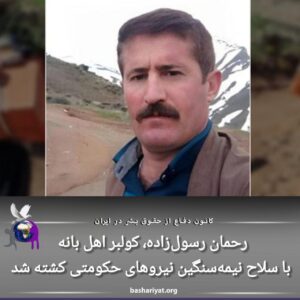 پیکر رحمان رسولزاده پس از لحظاتی به بیمارستان صلاحالدین ایوبی شهر بانه منتقل شده است.