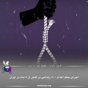 یعنی به طور متوسط هر ماه ۱۰۰ نفر اعدام شدهاند.دستکم ۳۰ زندانی سیاسی و عقیدتی در ۸ ماه اخیر اعدام شدهاند. در مدت اخیر دستکم ۲۲ زن و یک کودک تحت عنوان «کودک مجرم» در زندانهای ایران اعدام شدهاند.همچنین، از مجموع ۸۰۰ زندانی اعدام شده ۱۱۶ زندانی کورد، ۱۰۷ زندانی لُر، ۹۲ زندانی بلوچ و ۸۲ زندانی تُرک بودهاند.در این مدت دستکم ۴۶ تبعه کشور افغانستان نیز اعدام شدهاند.