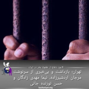 #مرجان_اردشیرزاده، #نیما_مهدی‌زادگان و #حسن_توزنده‌جانی از ٦ روز پیش در #تهران بازداشت شده‌اند و کماکان سرنوشت و وضعیت سلامت آن‌ها نامعلوم است.