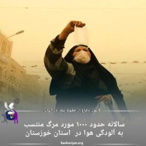 طبق اظهارات معاون بهداشت سابق دانشگاه علوم پزشکی، سالانه حدود ۱۰۰۰ مورد مرگ منتسب به آلودگی هوا در استان #خوزستان رخ میدهد