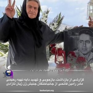 #دایە_نهیە_رحیمی مادر دادخواه #رامین_فاتحی در آستانە سالگرد آغاز جنبش ژن ژیان ئازادی توسط نهادهای امنیتی شهر سنندج (سنە) بازداشت و مورد بازجویی قرار گرفت.