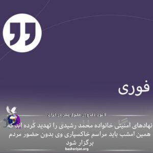 نهادهای امنیتی خانواده #محمد_رشیدی را تهدید کردهاند که همین امشب باید مراسم خاکسپاری وی بدون حضور مردم برگزار شود.