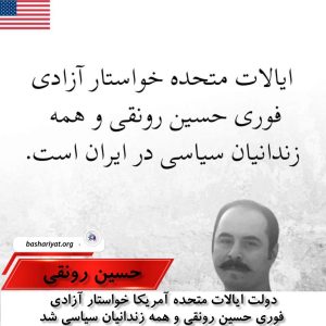 #حسین_رونقی، فعال ایرانی، که به دلیل انتقاد از رژیم ایران به ناحق زندانی شده است، در اعتراض به شرایط وحشتناک زندان در اعتصاب غذا به سر می برد. وضعیت سلامتی او به سرعت رو به وخامت است – کاهش شدید وزن، ضعف بیش از حد و فشار خون پایین خطرناک – که با محرومیت رژیم از داروهای مورد نیاز برای بیماریهای مزمن او، وخیم تر شده است. ظلم و ستم این رژیم استبدادی و ارزش قائل نبودن برای جان شهروندان خود، حد و مرزی نمیشناسد. ایالات متحده در کنار مردم شجاع ایران در مبارزه آنها برای عدالت و آزادی ایستاده است. ما این سوءاستفاده.های رژیم را محکوم میکنیم و خواستار آزادی فوری حسین و همه زندانیان سیاسی هستیم.»