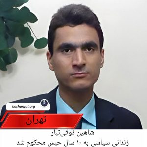 شاهین ذوقیتبار، زندانی سیاسی ساکن #تهران، از سوی شعبه ۲۶ دادگاه انقلاب به ریاست #قاضی_ایمان_افشاری به ۱۰ سال حبس محکوم شد. اتهامات او شامل «عضویت در سازمان مجاهدین خلق»، «نشر اکاذیب»، «تبلیغ علیه نظام» و «توهین به رهبری» است.