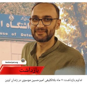 #امیرحسین_موسوی، متهم سیاسی محبوس در زندان اوین، علیرغم گذشت ۱۱ ماه از زمان بازداشت، کماکان در بلاتکلیفی به‌سر میبرد. به گفته رضا شفاخواه، وکیل مدافع وی، از پذیرش وثیقه برای آزادی موقت آقای موسوی تا زمان حصول نتیجه دادگاه، کماکان ممانعت می‌شود.