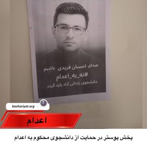 دانشجویان دانشگاه بهشتی پوسترهایی در حمایت از #احسان_فریدی، دانشجوی ۲۲ ساله محکوم به #اعدام، پخش کردند.