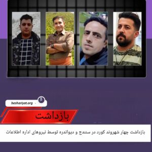بازداشت چهار شهروند کورد در سنندج و دیواندره توسط نیروهای اداره اطلاعات