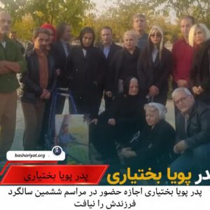 #صبا_بختیاری، عمه #پویا_بختیاری، اعلام کرد نهادهای امنیتی، روز ۲۵ آبان، مانع از حضور #منوچهر_بختیاری، پدر #پویا، در ششمین سالگرد کشته شدن فرزندش شدند.