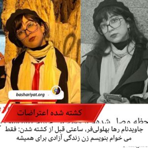 او در آخرین پیغام, چند ساعت پیش از کشتهشدنش نوشت:«یک لحظه وصل شدهم و فقط میخوام بنویسم #زن، #زندگی، #آزادی