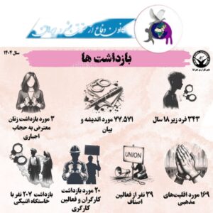 همچنین دستکم ۳ مورد بازداشت به دلیل عدم رعایت حجاب اجباری و آوازخوانی زنان در معابر عمومی ثبت شده است.