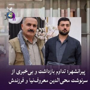 با گذشت بیش از یک هفته از بازداشت دو شهروند کورد و اهل پیرانشهر به نامهای #محیالدین_معروفنیا و فرزندش #بهنام_معروفنیا، سرنوشت آنان کماکان نامعلوم است.