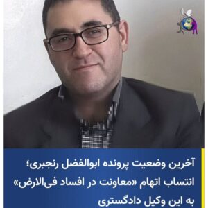 پرونده #ابوالفضل_رنجبری، وکیل دادگستری زندانی، در شعبه سوم دادگاه انقلاب #تبریز در حال رسیدگی است. به گفته وکیل او، با وجود عدم اثبات اتهام جاسوسی، عنوان اتهامی به «معاونت در افساد فیالارض» تغییر یافته است؛ اتهامی که بهگفته وی حتی مباشر مشخصی ندارد.