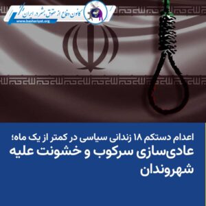 طی کمتر از یک ماه، دست‌کم ۱۸ زندانی سیاسی در ایران اعدام شده‌اند