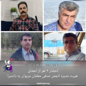 روز چهارشنبه ۱۹ بهمن طی تماس تلفنی ، ۴ نفر از هیئت مدیره انجمن صنفی معلمان مریوان به نام های