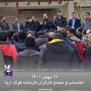 روز دوشنبه هفدهم بهمن ماه ۱۴۰۱، شماری از کارگران کارخانه فولاد آریا در اردستان واقع در استان #اصفهان در