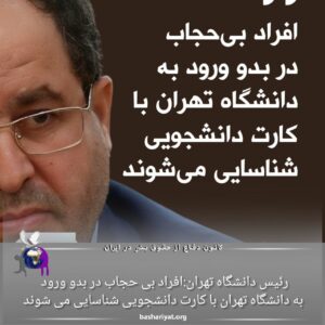 رئیس دانشگاه تهران: افراد بی‌حجاب در بدو ورود و در داخل محیط دانشگاه از طریق کارت دانشجویی شناسایی خواهند شد