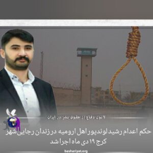 اجرا شدن حکم اعدام رشید لوندپور اهل ارومیه در زندان رجایی شهر کرج ۱۹ دی ماه