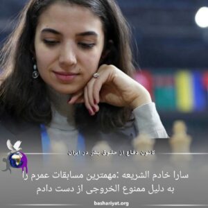 سارا خادم‌الشریعه،استاد بزرگ شطرنج ایران که در مسابقات قهرمانی جهان، بدون حجاب مسابقه داد، در