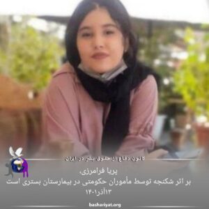 پریا_فرامرزی بازداشت و مدتی بعد براثر شکنجه به بیمارستان منتقل شد