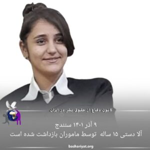 بازداشت آلا دستی (ئالا) دانش‌آموز ۱۵ ساله توسط ماموران حکومتی