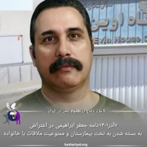 نامه اعتراضی جعفر ابراهیمی به دلیل بسته شدن به تخت بیمارستان با پابند و ممنوعیت ملاقات با خانواده