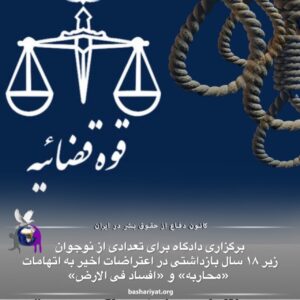 برگزاری دادگاه برای تعدادی نوجوان زیر ۱۸سال بازداشتی در اعتراضات اخیر به اتهامات محاربه و افساد فی الارض