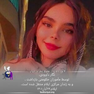 #نگار_داوودی، ۱۸ ساله، اهل #ایلام در روز ۲۴ آبان ماه ۱۴۰۱، در ایلام بازداشت و به زندان مرکزی ایلام منتقل