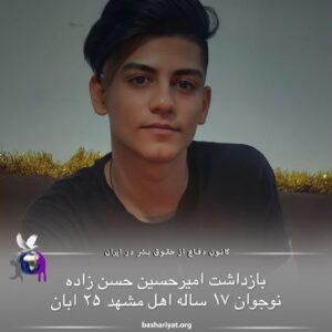 #امیرحسین_حسن_زاده، ۱۷ ساله اهل #مشهد در تاریخ ۲۵ آبان بازداشت و به زندان وکیل آباد منتقل شد.گفته