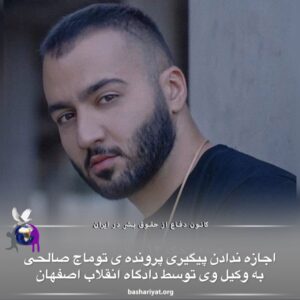 امیر رئیسیان، حقوق‌دان و وکیل توماج صالحی، اعلام کرد که، بر خلاف قانون، اجازه مطالعه و پیگیری پرونده موکلش