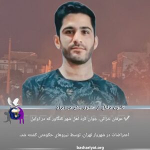 #عرفان_ خزائی، جوان کُرد اهل شهر کنگاور بود که در اویل قیام مردمی# ژینا، در شهریار تهران، توسط نیروهای
