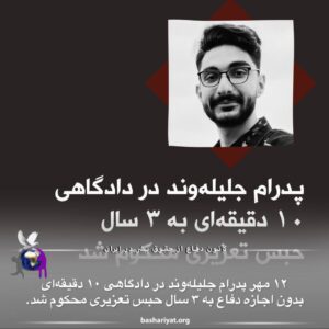 حکم حبس ۳ ساله پدرام جلیله وند در دادگاه ۱۰ دقیقه ای